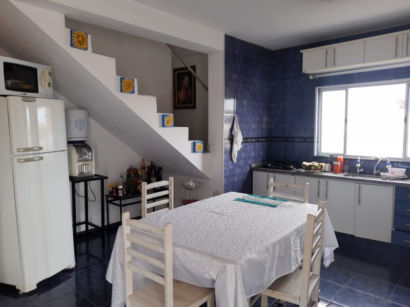 Sobrado com 2 dormitórios, sendo 1 suite com, Closet, WC Social, cozinha, escritório, lavabo, salão para festas com churrasqueira e 2 WC.