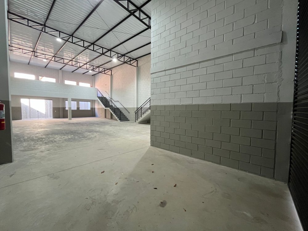 - Barracão amplo com mezanino e lavabo social com acessibilidade