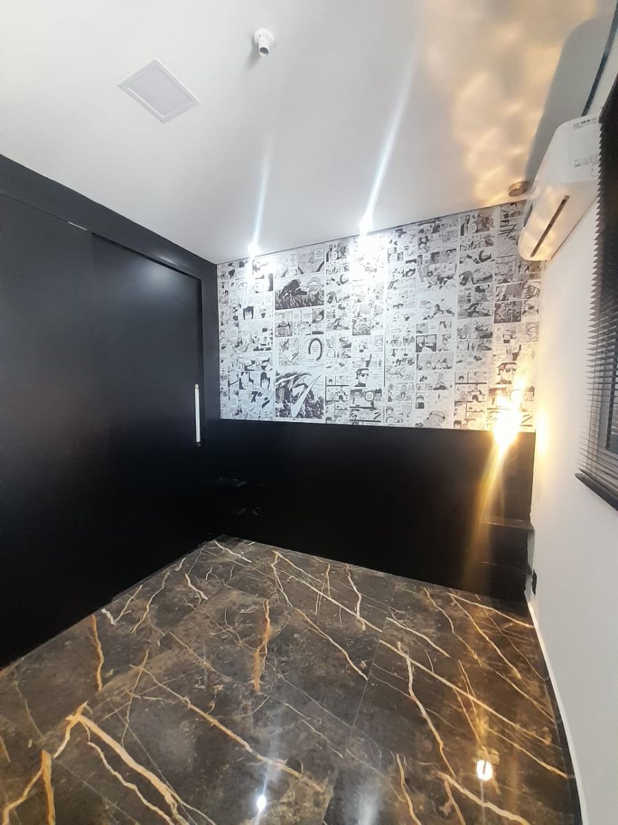 - Sala com painel e lustre